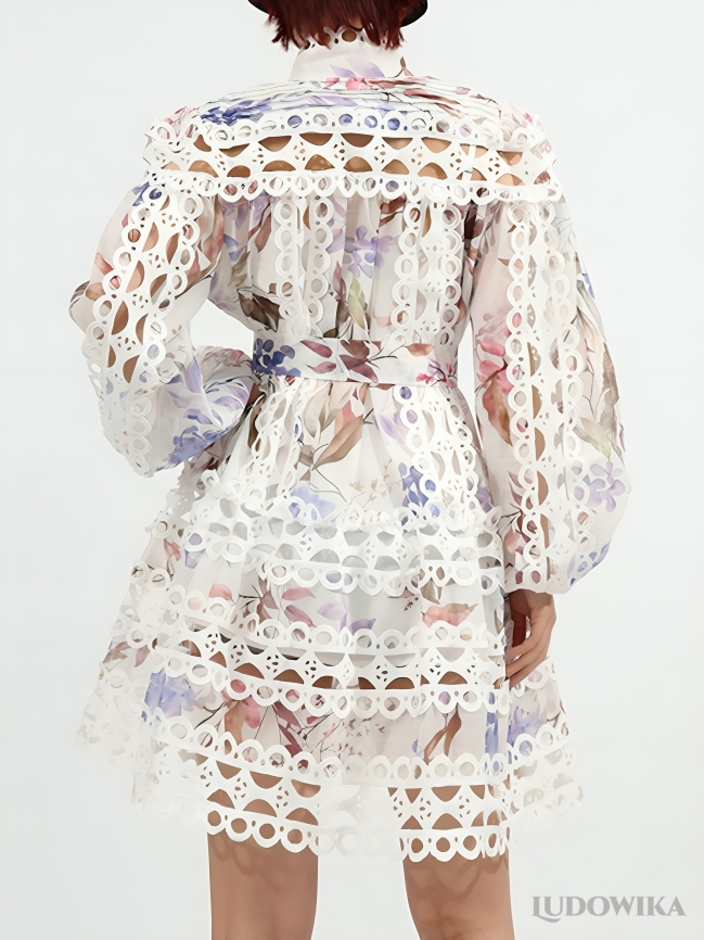 Lace Eyelet Mini Dress with Balloon Sleeves